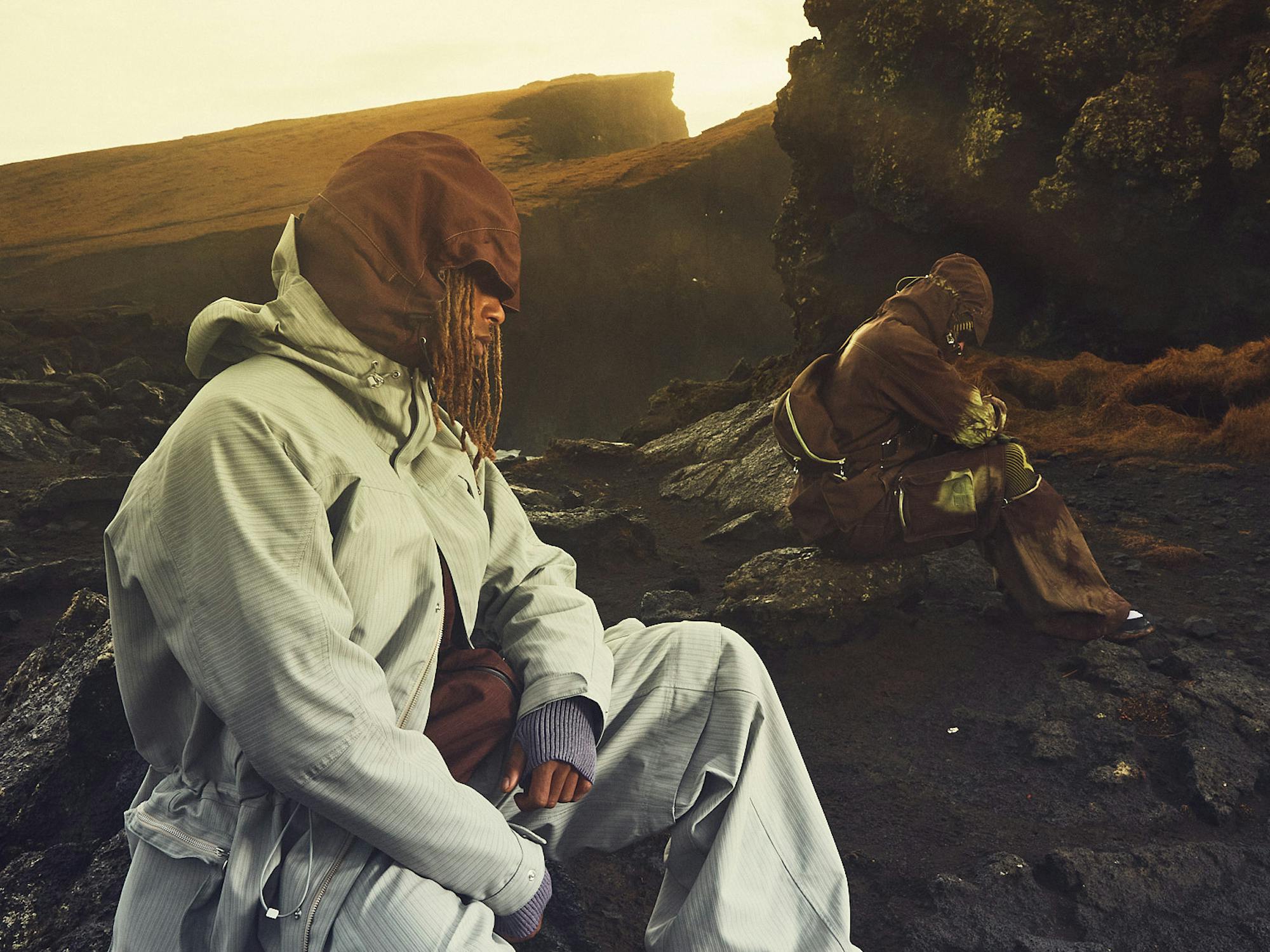 The capsule collection combines Constantinou‘s proficiency in technical fabrics and dyeing processes with our shared values of practicality and function and is primarily made using deadstock material. The collection features unique fabrics that act as a safety feature in Iceland's minimal daylight winters and include muted earth tones, purples, and reds.