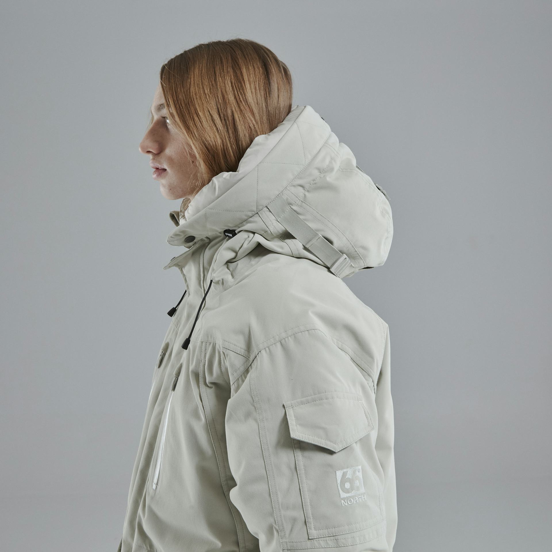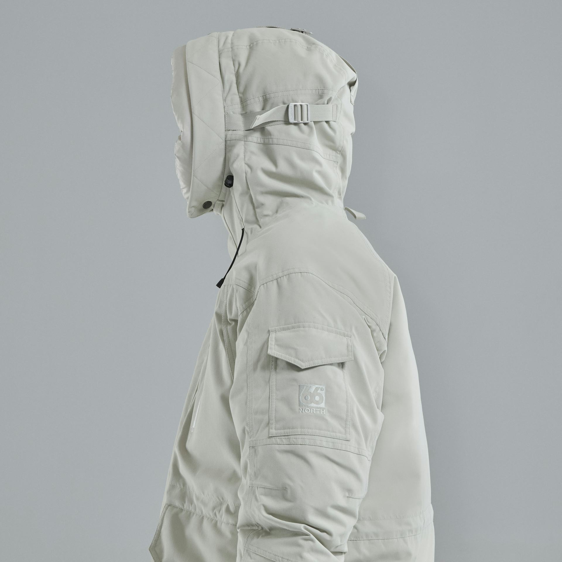 Jökla parka er hönnuð til þess að geta klæðst miðlagi undir. Hægt er að stila hettu og snúrugöng eru í mitti. Við mælum með að þeir sem eru á milli stærða taki einni stærð minna.