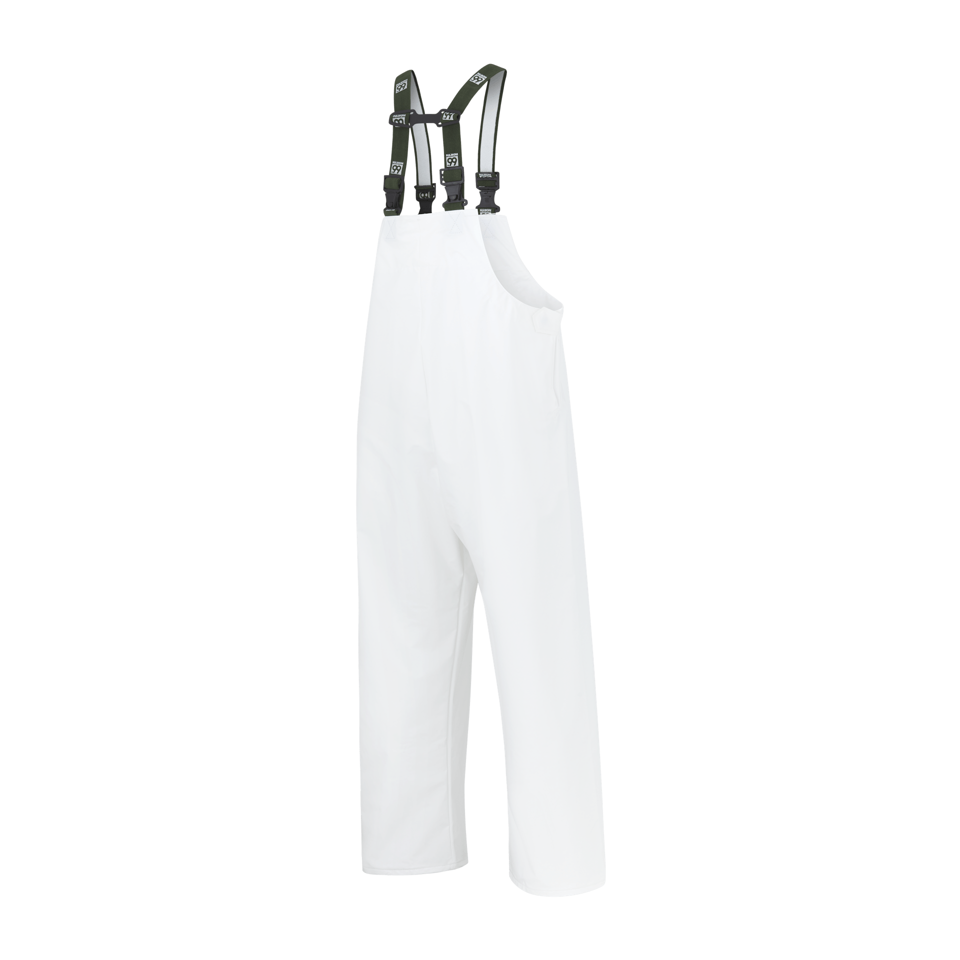 Regnheldar smekkbuxur með styrkingu á skálmum og stillanleg axlabönd. 210 g/m2