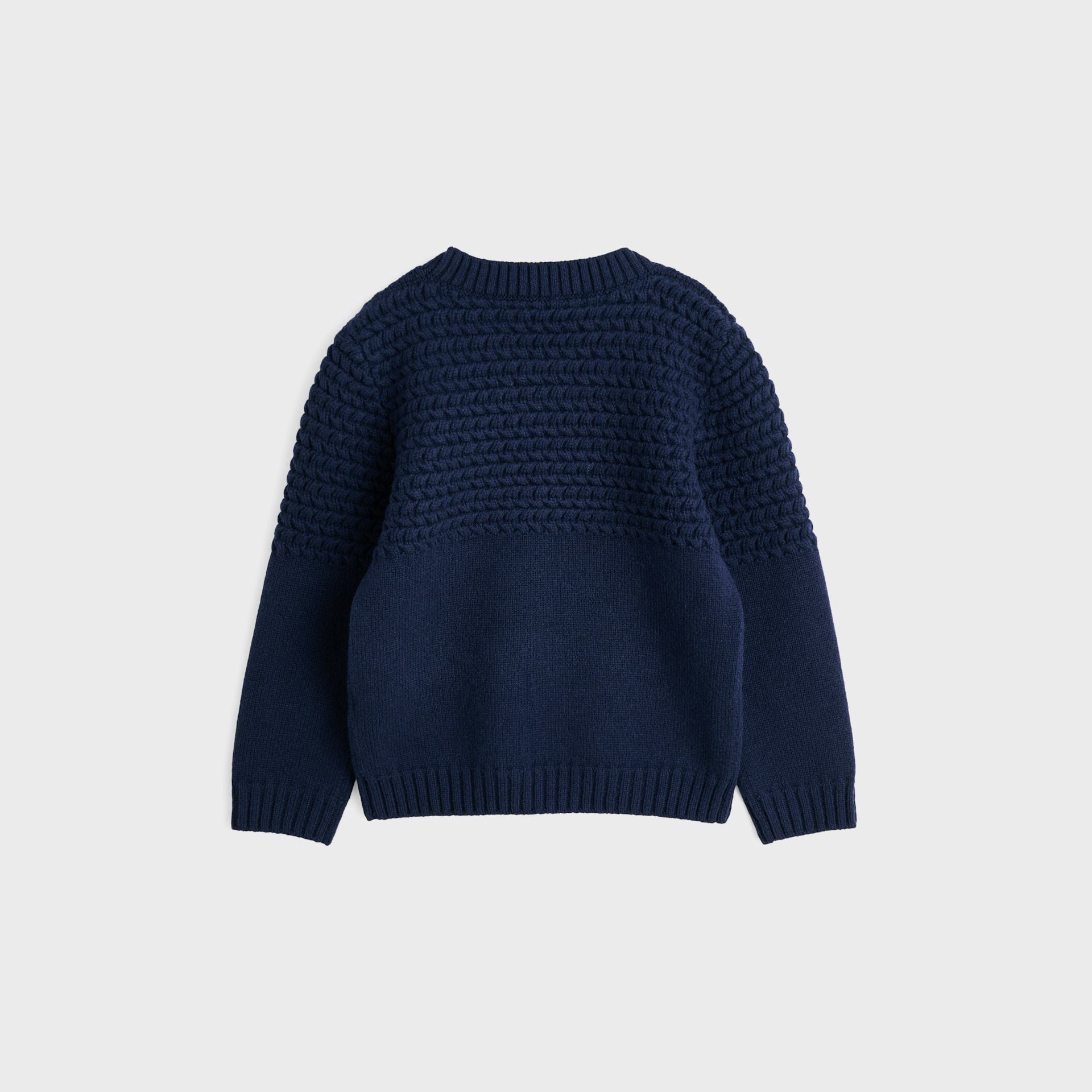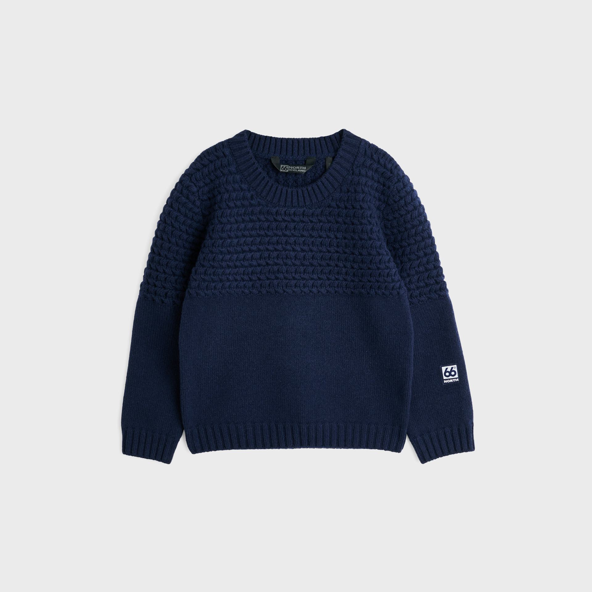 Prjónuð peysa á börn úr 100% ull, innblásin af gömlu duggarapeysunum. Peysan er prjónuð með sérstöku mynstri sem heldur hita einstaklega vel að líkamanum í sérstökum lofthólfum.